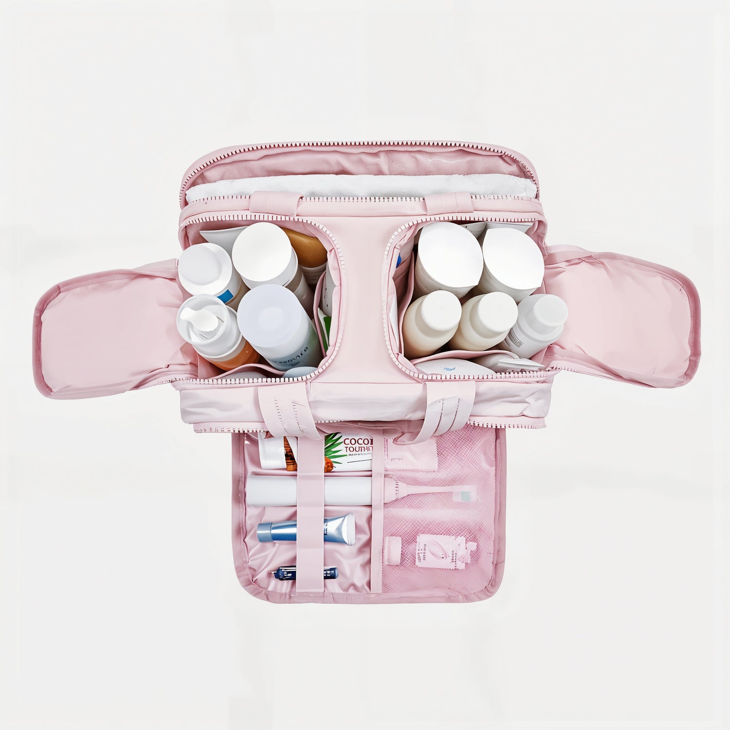 - 4 Storage Compartments — Store toiletries, makeup, brushes, and tech separately